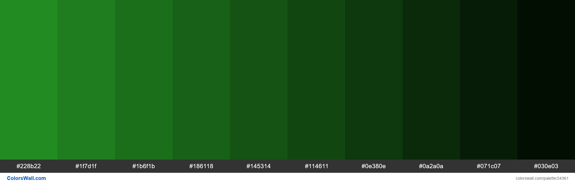 Uzivatel Colorswall Na Twitteru Shades Of Forest Green 228b22 Hex Color 228b22 1f7d1f 1b6f1b 186118 145314 114611 0e380e 0a2a0a 071c07 030e03 Colors Palette Https T Co Afprmrzefs Https T Co E6jbshijog Twitter